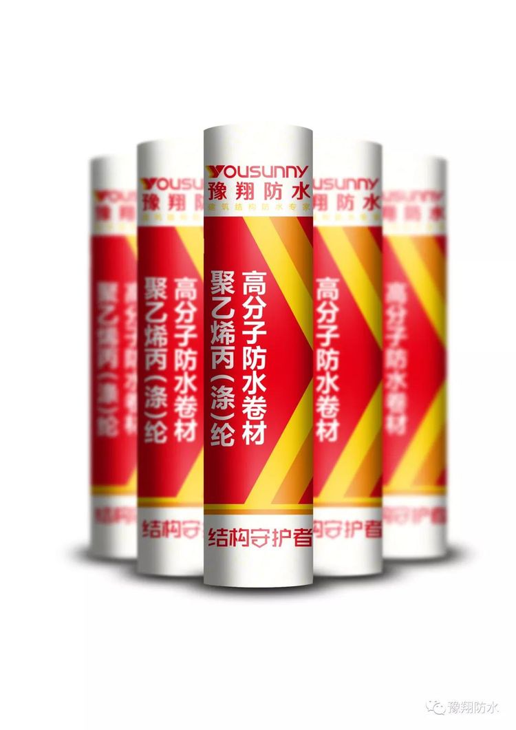 聚乙烯丙綸、滌綸防水卷材是以性能優(yōu)異的LLDPE、EVA原生樹脂和強度高、耐老化性能優(yōu)異的合成高分子纖維布為主要原料,配以抗老化劑、穩(wěn)定劑、紫外線屏蔽劑、經(jīng)塑料工藝一次擠出成型的高分子防水卷材。